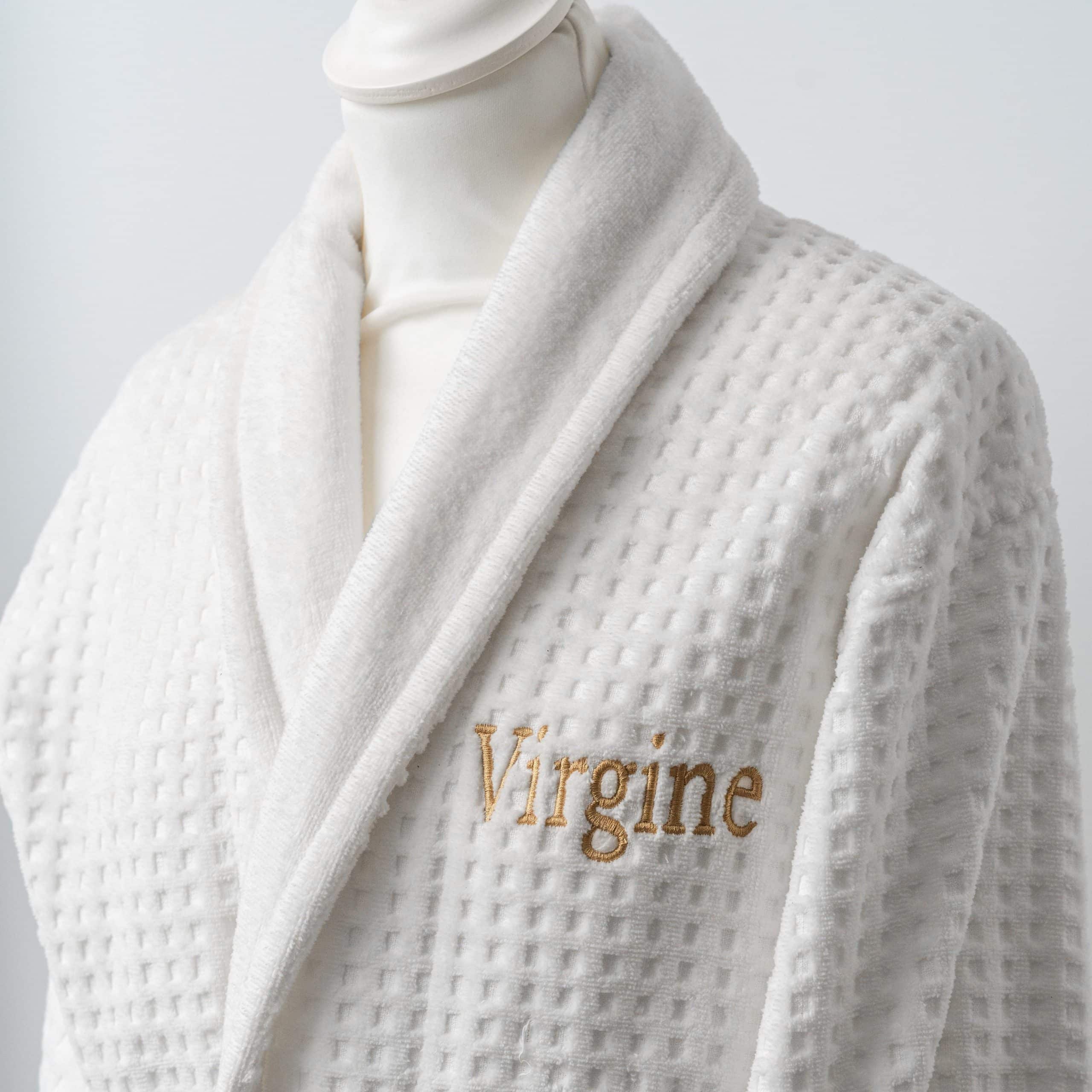 Our bathrobes are available in multiple colours, styles, and textures from plain white waffle cotton to super-soft navy and pink velour bathrobes. For an extra special gift or home luxury, you can embroider all of our bathrobes and dressing gowns with a name or initials.