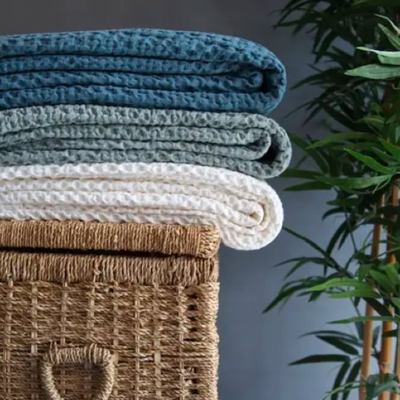 At King of Cotton, we stock high-quality cotton bedspreads and throws that can be used to add comfort and style to our other bedding ranges. Cotton is a light, breathable fabric, which is why it’s perfect for bedsheets all year round, adding an extra layer of warmth in the winter and serving as a simple covering for hot nights through the summer. Get a good night’s sleep under our range of high-quality cotton bedspreads and throws. Our range includes soft, waffle bedspreads in beige, navy, and white as well as throw over bedspreads that add an extra layer of warmth and comfort on cold nights.
