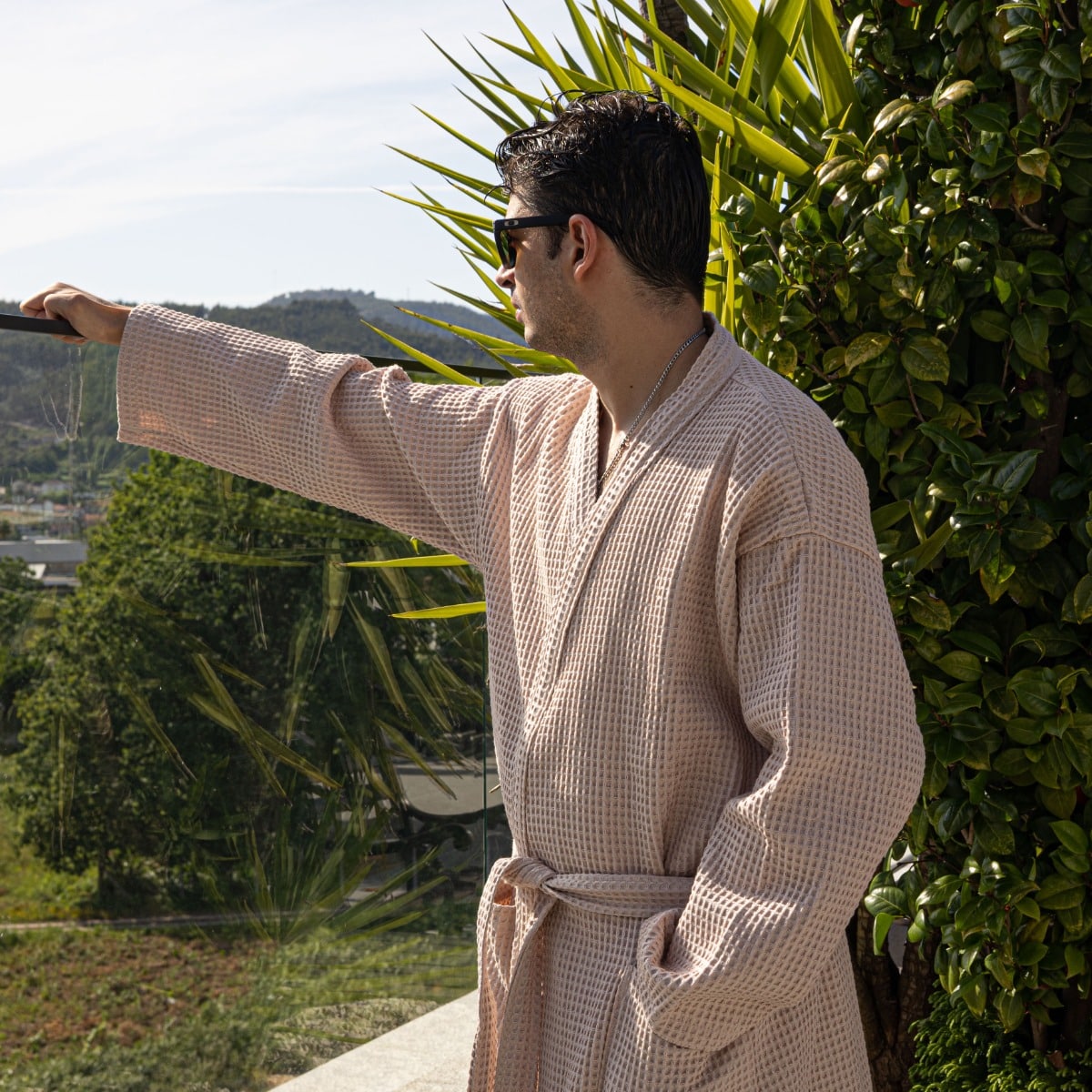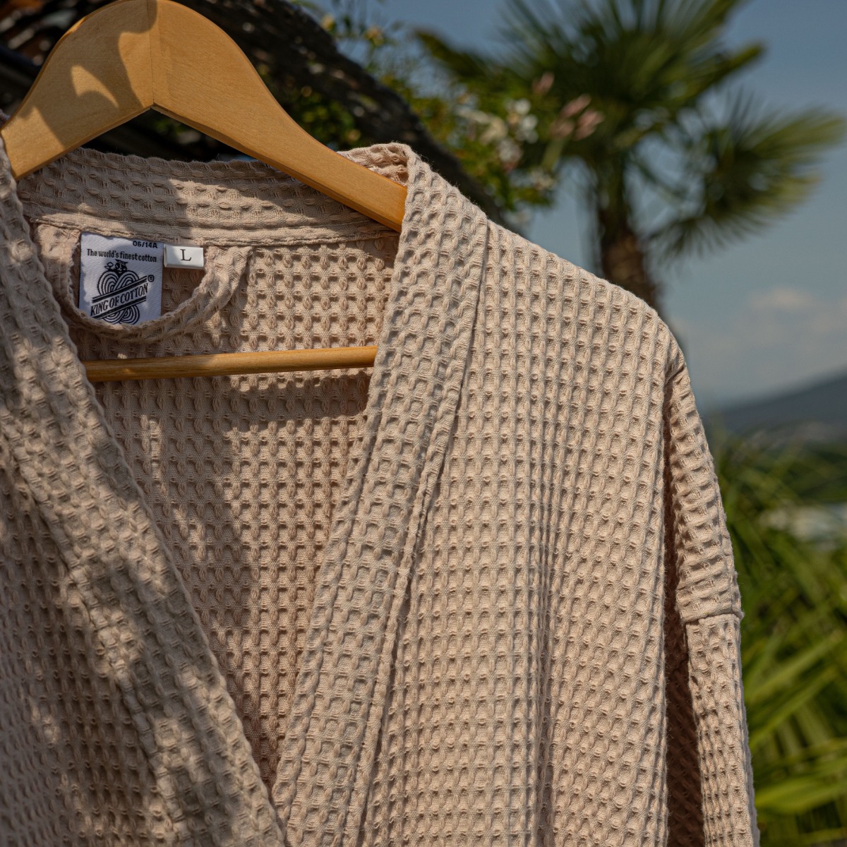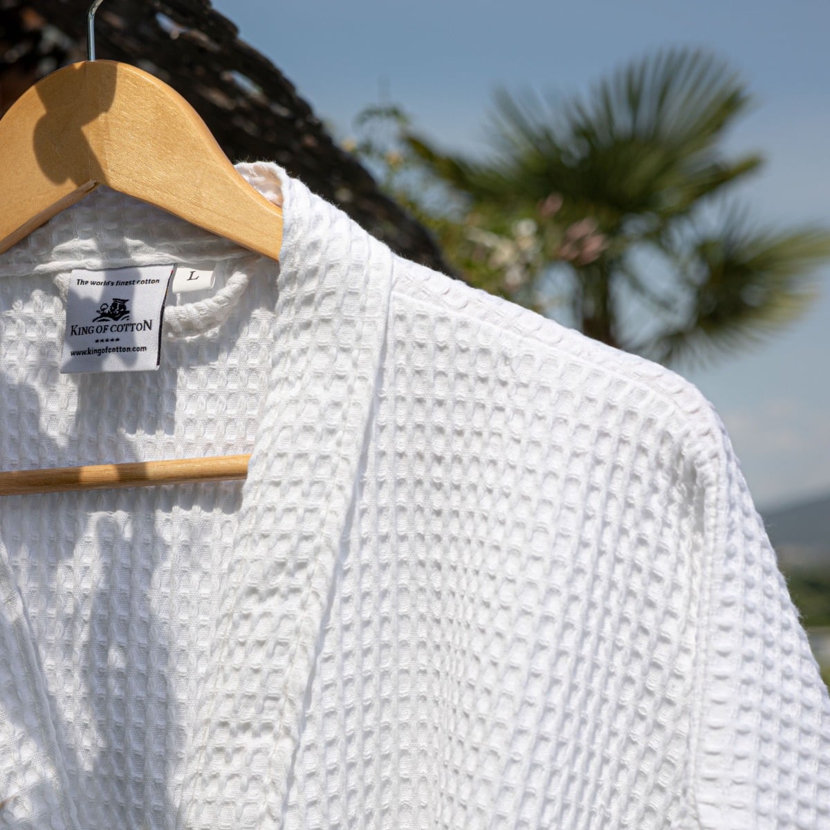 BOUTIQUE SPA – Baumwollbademantel im Kimono Stil und Waffelmuster gewegt (300gsm)