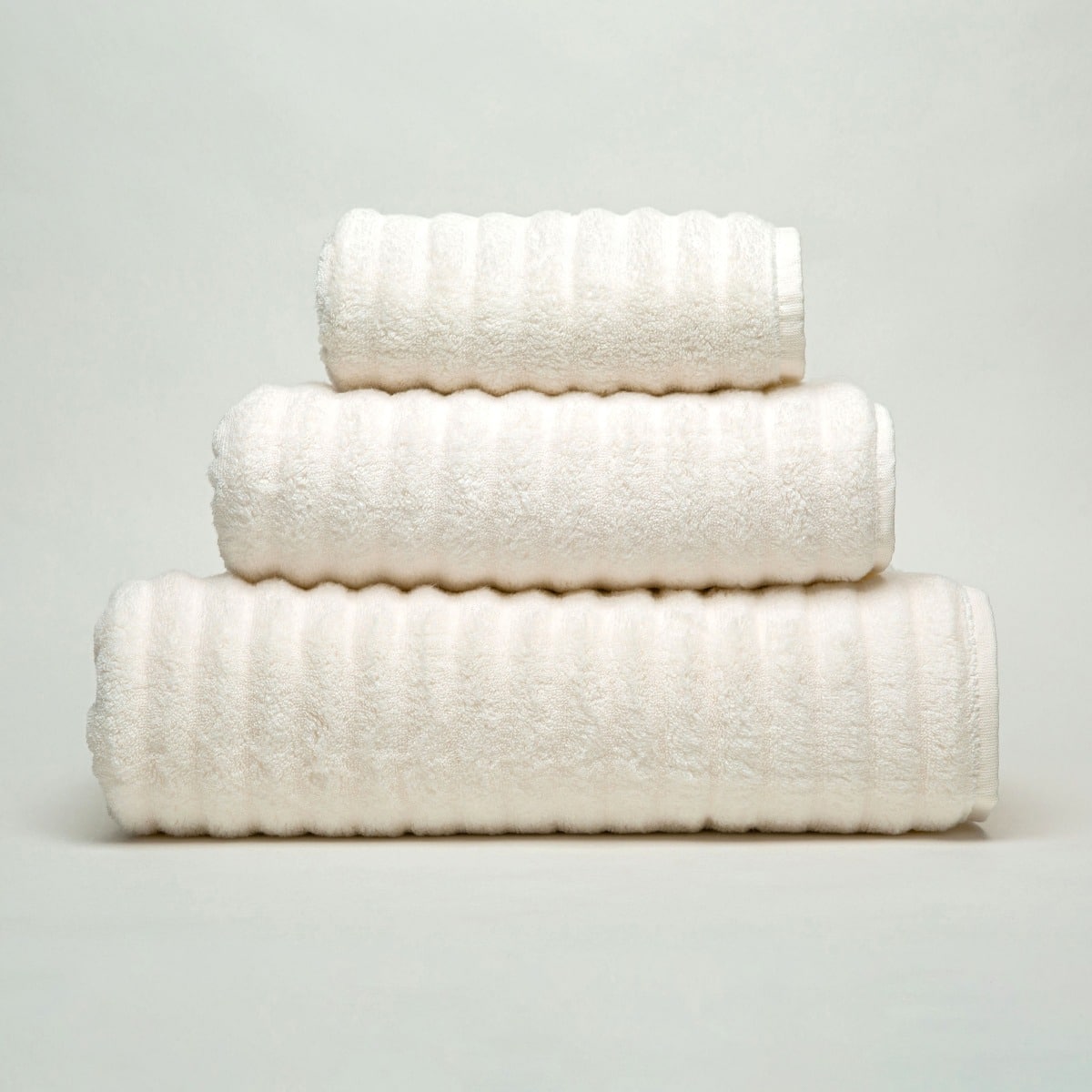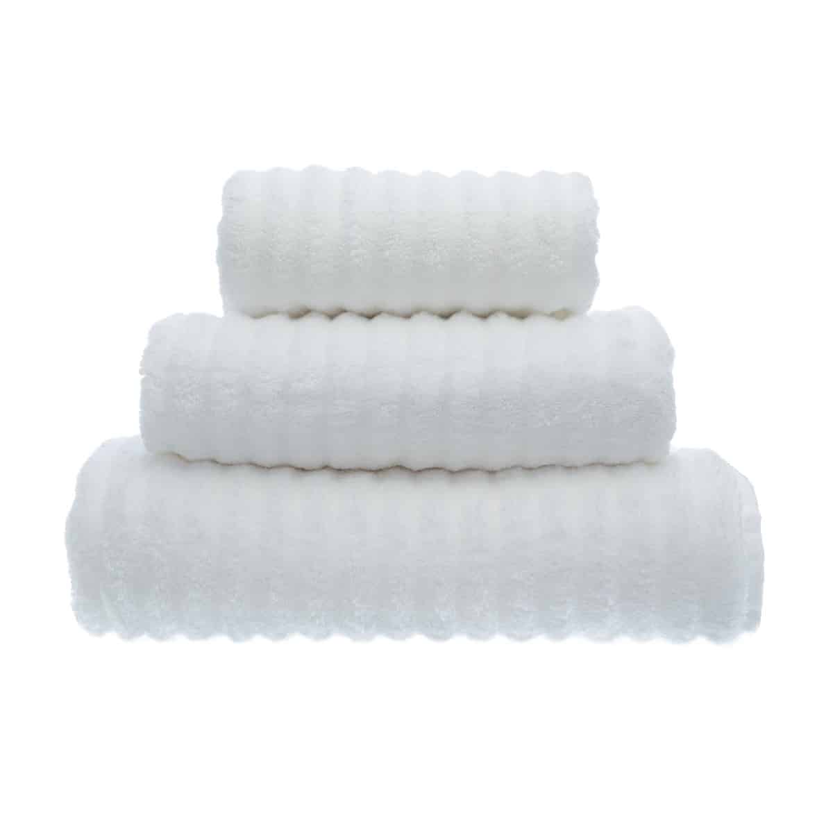 "MONT BLANC" - Das weicheste Handtuch aller unserer Luxus-Handtücher Kollektionen. Gewebt aus 100% in ungedrehtem, geripptem Baumwolle-Frottee, was unserer Meinung nach außergewöhnlich ist. Die völlige Abwesenheit von Windungen in den Baumwollfasern des Baumwoll-Frottee resultiert in einem ultraleichten Produkt. Es ist zudem superweich und unglaubliche saugfähig.